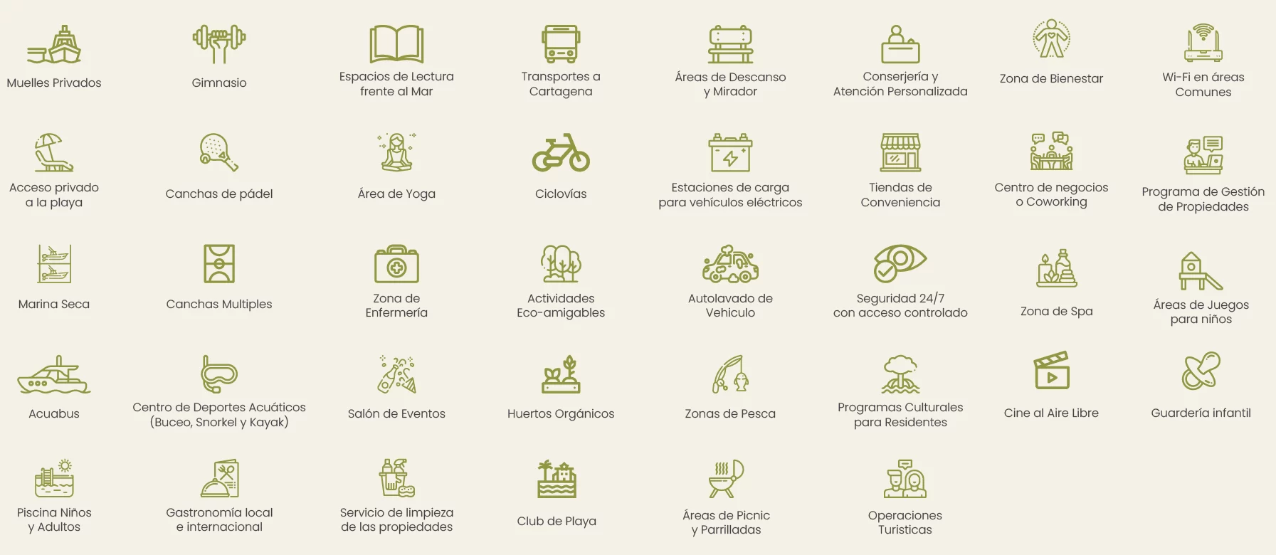 En Salagua Villas & Marina, cada detalle ha sido cuidadosamente diseñado para ofrecerte una experiencia única. Por eso contamos con más de 20 amenidades exclusivas, donde encontrarás lo que necesitas para disfrutar de un estilo de vida náutico, lleno de lujo y confort. Desde espacios de relajación hasta actividades recreativas, cada rincón está pensado para hacer de tu nuevo hogar un verdadero paraíso.