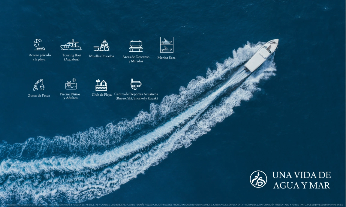 Con lotes desde 250 m² y más de 20 amenidades premium, incluyendo marina privada, club de playa, spa, senderos ecológicos y áreas sociales.